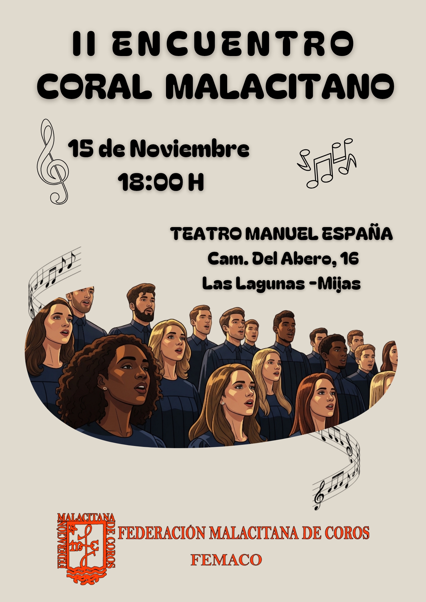 El próximo día 15 de noviembre la Coral Santa Cecilia participa en el II Encuentro de la Federación Malacitano de Coros junto a agrupaciones de toda la provincia de Málaga.