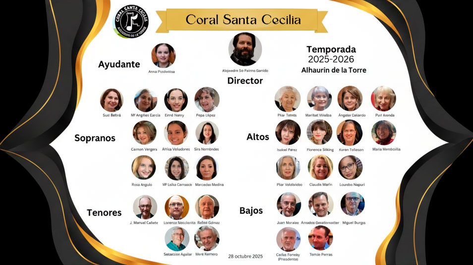 La Coral Santa Cecilia de Alhaurín de la Torre presenta su nueva orla coral 2025, elaborada por el tenor Lorenzo Marchante. Una imagen colectiva que refleja a los miembros actuales del grupo y captura el espíritu de la coral en este momento.